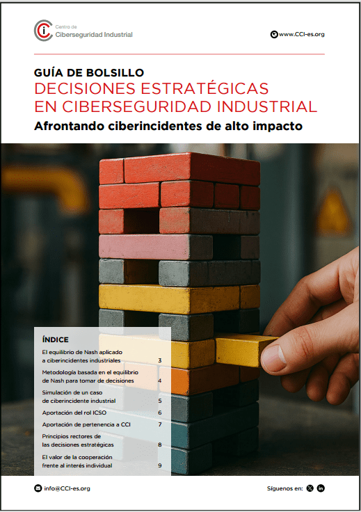 Desde CCI, presentamos esta Guía de bolsillo: Decisiones Estratégicas en Ciberseguridad Industrial, una herramienta esencial para responsables del sector que enfrentan ciberataques de alto impacto. Basada en el equilibrio de Nash, esta metodología ayuda a tomar decisiones coordinadas entre áreas técnicas, negocio, proveedores y reguladores, transformando la gestión de crisis en una oportunidad para reforzar la resiliencia. Incluye simulaciones reales, principios rectores y el papel clave del ICSO como facilitador neutral. Ideal para quienes buscan convertir la presión en liderazgo.