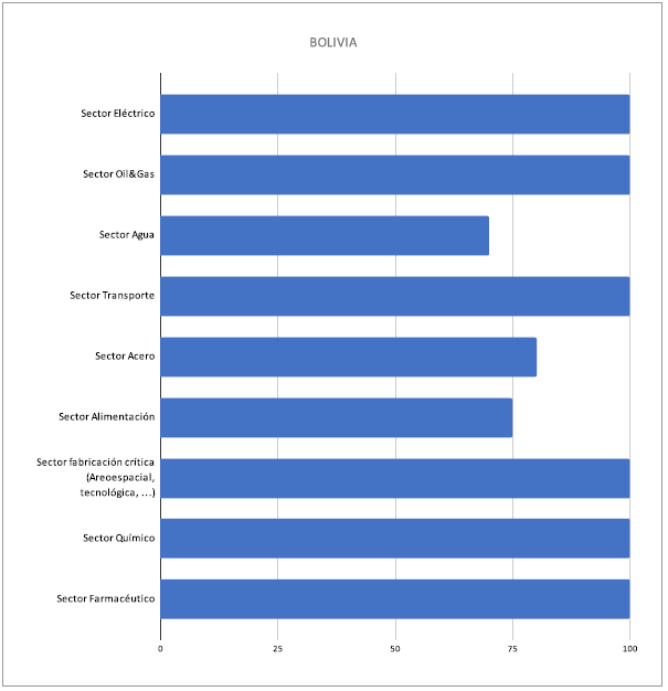 Bolivia cuenta con algunos organismos públicos nacionales que velan por generar un marco legal, que garantice la progresiva incorporación de la ciberseguridad industrial en las estructuras de las empresas con presencia nacional, entre las principales cabe destacar: